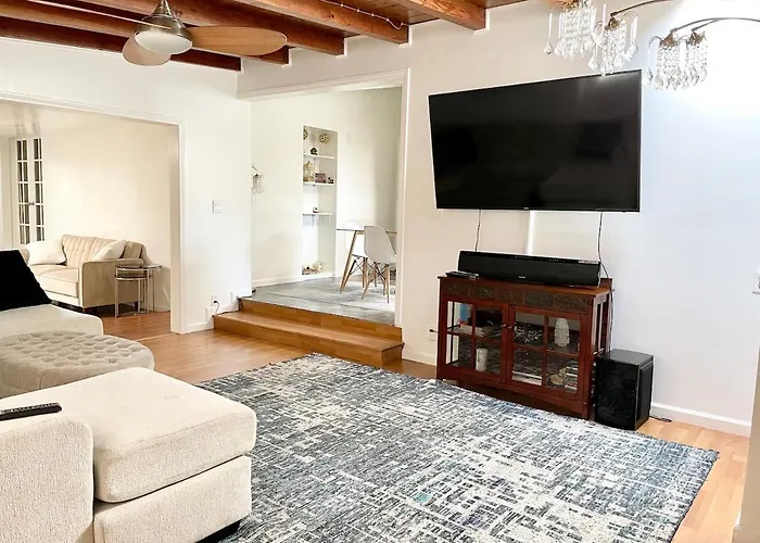 Bright Modern Pool House In Quiet Location Villa Los Angeles is nestled within 25 minutes' walk of Madrid Theater and provides a hot tub. Featuring a terrace, the Los Angeles villa is situated 3.5 km from the Warner Center Park Playground.